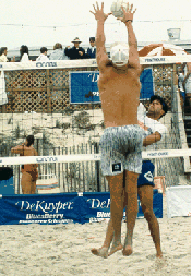 The Hampton Beach Club was the beach volleyball hot spot on Long Island in 1990 when the DeKuyper Volleyball Tournament was held. The California team of Tom Hooper and Chris Allard, both with top 50 AVP rankings, came east expecting easy pickings in the $1,000 cash tournament. [