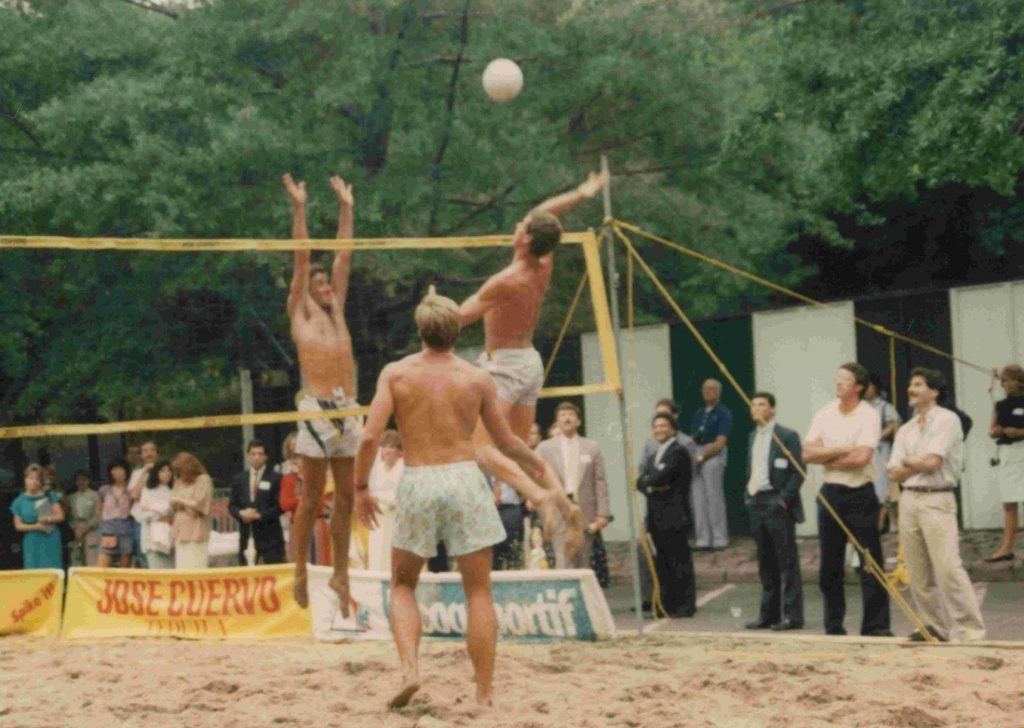 In 1987 EEVB ran a special demonstration for Jose Cuervo Tequila and le coq sportif in Central Park. The event was closed to the public and was intended to showcase beach volleyball and le coq sportif clothing to the media, both sports and fashion. Seventy tons of sand was placed in a parking lot near the lake at the southern end of Central Park and a volleyball court was erected.